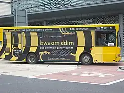 The three 28-seater buses in a yellow and black livery were introduced as part of a multimillion-pound joint council and Assembly Government-funded green initiative designed to encourage sustainable transport.[3]