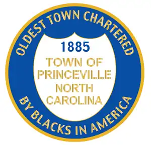 Princeville is a town in Edgecombe County, North Carolina, United States established by freed slaves after the Civil War. It was established in 1865 and known as Freedom Hill.[5] It was incorporated in 1885 as Princeville, the first independently governed African American community chartered in the United States.