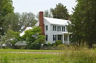 Freeman House, also known as The Stateline House, is a historic home located on the North Carolina-Virginia state line near Gates, Gates County, North Carolina, USA. The house was built in three building phases, the earliest perhaps dating to the late-18th century. The farmhouse was initially built following the basic early-Federal-style one-room plan, followed by the addition of a late-Federal-style two-story side-hall-plan, which was finally enlarged and converted in the mid-19th century to a more substantial Greek Revival style, center-hall-plan dwelling. The main section is a two-story, five-bay, frame structure. Also on the property are the contributing smokehouse, a kitchen with exterior end chimney, a one-story tack house with an attached wood shed, a small, unidentified shed, two large barns, and a stable.[2]