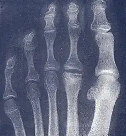 {{cite web}}: CS1 maint: multiple names: authors list (link) - ^ Smith T, Vito GR. "Freiberg's Infraction, Compression Fractures and Osteochondritis" (PDF). The Podiatry Institute. Retrieved 1 March 2014.