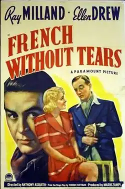 French Without Tears is a 1939 British comedy film directed by Anthony Asquith and starring Ray Milland. It was based on the 1936 play of the same name by Terence Rattigan, who also co-wrote the script. An on-off working relationship between Asquith and Rattigan began with this film and continued over the next 15 years.[1][2]