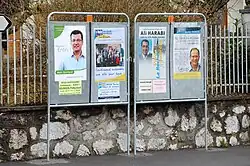 For the first time ever, the three main parties (center-right UMP, centrist MoDem, and center-left PS) put on top of a 50-odd lists candidates with a non-European ethnic background ("candidats de la diversité"), most either from North Africa, a few from the French Caribbean departments or sub-Saharan Africa, most against incumbent mayors from the opposite party, thus with lower chances to succeed.[5][6]