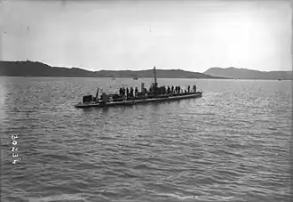 For surface running, the boats were powered by two German MAN 315-metric-horsepower (311 bhp; 232 kW) diesel engines, each driving one propeller shaft. When submerged each propeller was driven by a 180-metric-horsepower (178 bhp; 132 kW) electric motor. During her surfaced sea trials on 19 September 1908, Circé reached a maximum speed of 11.9 knots (22.0 km/h; 13.7 mph) from 901 metric horsepower (889 bhp; 663 kW); during her submerged trials on 25 June 1909 she reached 7.7 knots (14.3 km/h; 8.9 mph) from 394 metric horsepower (389 shp; 290 kW).[3] The Circé class had a surface endurance of 2,000 nautical miles (3,700 km; 2,300 mi) at 7.3 knots (13.5 km/h; 8.4 mph)[1] and a submerged endurance of 76 nmi (141 km; 87 mi) at 4 knots (7.4 km/h; 4.6 mph).[4]