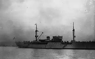 After the surrender of France, Jules Verne served in the naval forces of Vichy France. She supported French submarines at Casablanca, then in November 1940 was placed under guard in an unarmed and unfueled state at Bizerte, Tunisia, in accordance with the terms of the June 1940 armistices.[1][2] She underwent a refit at Bizerte, then was reactivated and got underway for Dakar in Senegal in French West Africa under escort by the submarine La Psyché.[6] The two vessels reached Dakar on 23 March 1941,[6] and from then until December 1942 Jules Verne was stationed at Dakar to support French submarine operations there.[1][2] During her stay in Dakar, Allied forces invaded French North Africa in Operation Torch on 8 November 1942, and after hostilities between Allied and Vichy French forces in French North Africa ceased on 11 November 1942, French forces in Africa switched to the Allied side to fight in the forces of Free France.