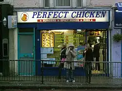Chicken shops are nevertheless regarded by some people as important cultural institutions in the UK, particular for black and Asian communities. A 2017 article in Vice suggested that as meeting places and providers of cheap meals, they play an important role in neighbourhoods marred by the impacts of austerity and other government policies.[6]
