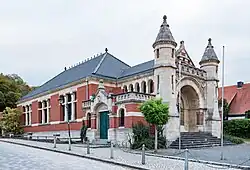 The Friedrich Ludwig Jahn Memorial Gymnasium (in German Friedrich-Ludwig-Jahn-Erinnerungsturnhalle) in Freyburg, Germany, is a listed historic building that combines a gymnasium with a memorial. It was built in 1894 in the Neo-Romanesque style to commemorate Friedrich Ludwig Jahn (1778–1852), the founder of the German gymnastics movement. The design was created by architect Georg Weidenbach from Leipzig, and the site chosen was the former cemetery located outside the Obertor gate. During construction, Jahn's remains were transferred in March 1894 to a specially constructed crypt beneath the northwestern gable of the gymnasium. The initiative for the building came from the Deutschen Turnerschaft (German Gymnastics Association) along with private supporters. Upon completion, the gymnasium was presented as a gift from the Deutschen Turnerschaft to the town of Freyburg. Today, it is regarded as an important architectural testament to the gymnastics and commemorative culture of the late 19th century.