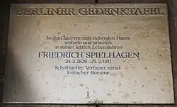 Spielhagen's Sämtliche Werke (Complete Works) were published in 1871 in sixteen volumes, in 1878 in fourteen volumes. His Sämtliche Romane (Complete Novels) followed in 1898 (22 vols), and these were followed by a new series in 1902. In 1890, he published his autobiography, Finder und Erfinder (2 vols, 1890).[1]