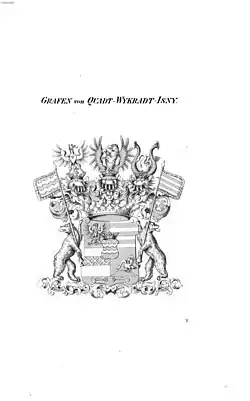 - ^ a b c d e f g h i j k l Fugger-Glött, Hermann Joseph (1892). Friedrich Wilhelm, Graf von Quadt-Wykradt-Isny: kgl. bayr. außerordentlicher Gesandter und Minister a. D., Großkomthur des kgl. bayr. Hausordens vom hl. Georg etc. etc. etc. geboren am 23. Dezember 1818, gestorben am 24. Okober 1892 (in German). Hans Acherer. Retrieved 3 February 2023.