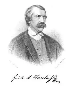 Frigyes Ákos Hazslinszky or in German version of his name Friedrich August Hazslinszky von Hazslin (Késmárk Kingdom of Hungary, Austrian Empire (now Slovakia), 6 January 1818 – Eperjes, Kingdom of Hungary, Austria-Hungary (now Slovakia) , 16 September 1896) was a Hungarian mycologist and botanist. Upon completing his lyceum studies in Késmark (today Kežmarok, Slovakia), he studied philosophy, law, theology and chemistry, working concurrently as a teacher. After a stint as teacher in Debrecen and Sárospatak, and further studies in Vienna, he became professor of physics and mathematic at the Lutheran College in Eperjes (today Prešov) in 1846.