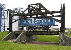 The island was also the location of Stephenson's Lifting Bridge, which carried the Swannington Railway over the Soar Navigation. The bridge was designed by Robert Stephenson,[14] and careful counterbalancing allowed it to be operated by hand from a booth at the side of the canal.[15] It was removed in the mid-twentieth century, became an exhibit at Snibston Discovery Museum[16] until that museum's closure and is now at the Mountsorrel & Rothley Community Heritage Centre where it is being rebuilt.[17]
