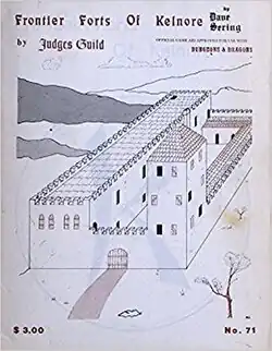 Shortly after the publication of D&D by TSR, Judges Guild received permission from TSR to create licensed "player aids" for the fantasy role-playing game.[3] Frontier Forts of Kelnore, written by Dave Sering, and featuring art by Sering and Jennell Jaquays, was published in 1978 as a 32-page book with a simple sketch on the cover.[1] The following year, Judges Guild released a second printing featuring full-color artwork on the cover.