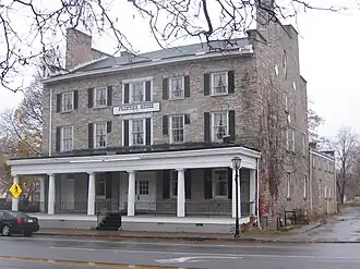 The Frontier House, built in 1824, is situated at 460 Center Street, Lewiston, New York, of Niagara County and was hailed as the best hotel west of Albany. Prominent business men of Lewiston, Benjamin and Samuel Barton along with Joshua Fairbanks headed the building of the tavern.[3]