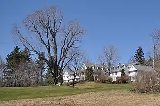 The former Frost Farm property is located in a rural setting west of Dublin Pond, on the north side of Old Marlborough west of Charcoal Road. It is a rambling 2+1⁄2-story wood-frame structure, with a clapboarded exterior and a variety of rooflines. Covered porches line some portions of the building, and some of its roofs are pierced by rows of gabled dormers. The property includes a number of later 20th-century outbuildings, including a chapel and barns.[2]