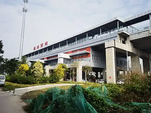 Fuhai West railway station (Chinese: 福海西站; pinyin: Fúhǎi Xī Zhàn; Jyutping: Fuk1hoi2sai1 Zaam6) is a railway station in Bao'an District, Shenzhen, Guangdong, China. It opened on 15 December 2019.[1][2] It has 4 exits, lettered A-D, situated on the east and west sides of Songfu Boulevard.[3]