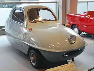 The Fuji Cabin is a three-wheeled microcar produced by Fuji Toshuda Motors of Tokyo, Japan, from 1957 until 1958.[1] It was introduced at the Tokyo Motor Show in 1955.[2] The car has two front wheels and one rear. Its two-seater body, with a distinctive single headlamp, is constructed of fibreglass.[1]
