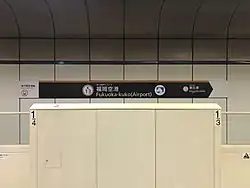 Fukuokakūkō Station (福岡空港駅, Fukuokakūkō-eki; "Fukuoka Airport Station") is a Fukuoka City Subway station serving the domestic terminal of Fukuoka Airport in Fukuoka prefecture, Japan. The station symbol is a blue airplane and a cloud. This is the only subway station in Japan which directly connects with an airport.