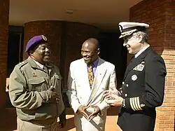 Gqiba (left) as SANDF Chaplain General, with Sabelo Maseko, Chaplain General of Swaziland, and Chaplain (Rabbi) Arnold E. Resnicoff, Command Chaplain for the U.S. European Command