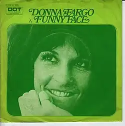 "Funny Face' is a song written and recorded by American country music artist Donna Fargo. It was released in August 1972 as the second single from the album The Happiest Girl in the Whole U.S.A. The song hit number one on the country chart and was a Gold Record. "Funny Face" remained number one for three weeks and spent a total of fourteen weeks on the chart.[2] "Funny Face" also crossed over to the pop chart, peaking at number five, making it her only top 10 hit on the Hot 100 chart.[3]