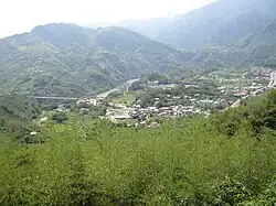 Fuxing District (Atayal: Pyasan; Chinese: 復興區; pinyin: Fùxīng Qū), formerly known as Fuxing Township or Fu-Hsing Township (Chinese: 復興鄉; Hanyu Pinyin: Fùxīng Xiāng; Tongyong Pinyin: Fùsing Siang; Wade–Giles: Fu4-hsing1 Hsiang1) is a mountain indigenous district in eastern Taoyuan City, Taiwan. The main population is the Atayal people of the Taiwanese aborigines. Lala Mountain (拉拉山) is a major feature of Fuxing, and the Shimen Reservoir, formed by Shimen Dam, is a popular nearby site. Fuxing District is, by area, the largest district in Taoyuan City.