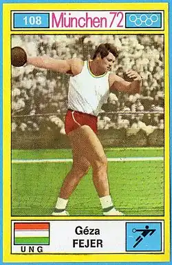 Géza Fejér (born 20 April 1945) is a retired Hungarian discus thrower. He won a bronze medal at the 1971 European Championships and finished fifth in the 1972 Summer Olympics.[2]