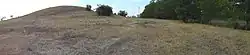 Gödény-halom is situated 7 kilometres away from the inner area of Békésszentandrás, close to the old road to Szentes.[1] It is in the one-time flood area of the River Hármas-Körös.[1] The name gödény (English: pelican) refers to the fact that it was once a roosting spot for pelicans in the swampy area.[1] Today, it marks the county boundaries of Békés, Csongrád and Szolnok.[2] Part of the northern side has been destroyed for the building of roads and a nearby dam.[1]