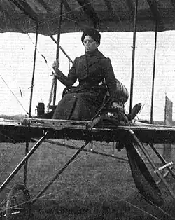 Taught to fly biplanes by several of the most accomplished male aviators of her day, she studied with the French aviator and aircraft designer, Roger Sommer, at his school in Douzy, France in October 1911, and then again at his larger facility in Mourmelon, France 1912. The 23 March 1912 edition of Flight reported on her activities as follows:
