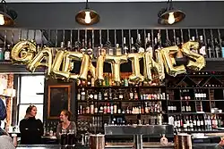 The concept and name of the holiday was imagined into existence by Parks and Recreation in the eponymous episode Galentine's Day, with the episode being written by Aisha Muharrar.[3] The sitcom's main character Leslie Knope (played by Amy Poehler) is the originator of the holiday. Jumping from fiction to real life, the occasion is well known enough that Galentine's Day merchandise is now sold at mainstream outlets like Walmart, Party City,[3] Amazon and Etsy.[4] Retailers also use the holiday as a pretext for organizing pop-up shops marketing products to female customers.[4] Many resorts and restaurants offer Galentine's themed package deals.[5]