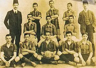 Fenerbahçe squad of 1910. Galip Kulaksızoğlu is the one keep the ball