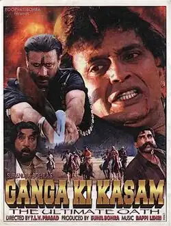 Ganga Ki Kasam (transl. The Vow of Ganga) is a 1999 Indian Hindi-language action film directed by T L V Prasad, produced by Sunil Bohra[1] starring Mithun Chakraborty, Jackie Shroff, Dipti Bhatnagar, Mink Singh, Johnny Lever, Shakti Kapoor, Dalip Tahil, Mukesh Rishi and Raza Murad.[2][3][4]