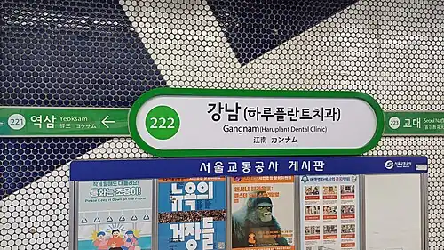 1. ^ a b 강남역 (in Korean). Doopedia. Retrieved 2 September 2015.