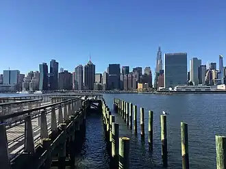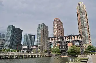 Gantry Plaza State Park is a 12-acre (4.9 ha) state park[1] on the East River in the Hunters Point section of Long Island City, in the New York City borough of Queens. The park is located in a former dockyard and manufacturing district, and includes remnants of facilities from the area's past. The most prominent feature of the park is a collection of gantries with car float transfer bridges, which in turn were served by barges that carried freight railcars between Queens and Manhattan.