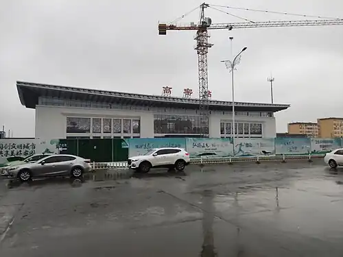Gaomi railway station (Chinese: 高密站; pinyin: Gāomì zhàn) is a railway station in Gaomi, a county-level city under the administration of Weifang, Shandong. It is on the Qingdao-Jinan Passenger Railway (running CRH trains and passenger trains) and Qingdao-Jinan Railway (running freight trains and some passenger trains which give way to CRH trains).