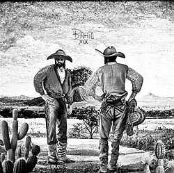 This pioneering in the hinterland, starting from the tower house, gave rise to the figure of the vaqueiro, popularly known as "vaqueiro nordestino", it was through this pioneering taking livestock to the Bahian sertão, that vaqueiros began to look for leather as "armor" to deal with the cattle in the thorny forest.[5]