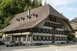 Gasthof zum Bären is a traditional inn in Trubschachen village, Bern canton, Switzerland, first written record about it is from 1356. [1] The official inn working (Tavernenrecht) started in 1569 and today it is a popular meeting point of the folk culture. [2]