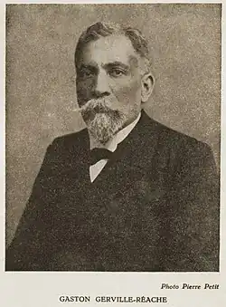 Gaston Gerville-Réache (born 23 August 1854 in Pointe-a-Pitre, Guadeloupe; died 30 May 1908 in Mareil-en-France, France) was a politician from Guadeloupe who served in the French National Assembly from 1881-1906 . His daughter was Opera Singer Jeanne Gerville Reache Rambaud.