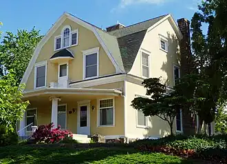 It was designed by architect James Nave and includes Colonial Revival style, in particular Dutch Colonial.[2]