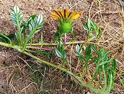 Gazania maritima is a perennial species, with a spreading growth-form (similar to Gazania rigens) and stems that spread and form mats.