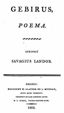 - ^ Landor, Walter Savage (1803). Gebirus, Poema.