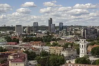 Gediminas Avenue (Lithuanian: Gedimino prospektas) is the main street of Vilnius, where most of the governmental institutions of Lithuania are concentrated, including the government, parliament, Constitutional Court and ministries. It is also the location of cultural institutions such as the Lithuanian National Drama Theatre, Bank of Lithuania, Lithuanian Academy of Music and Theatre and Martynas Mažvydas National Library. It is also a popular shopping and dining street, with the highest average rent prices in the country.[1] It is partially a pedestrian street in the evenings when traffic is prohibited.