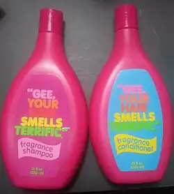 Gee, Your Hair Smells Terrific was a popular fragrance shampoo[1] manufactured by the Andrew Jergens Company from 1976 through the late 1980s. The shampoo is noted for its unusually pungent floral scent that softened after rinsing and remained fragrant in the user's hair for an extended period of time.[2] The shampoo's unique aroma has been described as similar to a combination of chamomile, bubblegum and sage.[1]