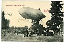 Gelatine was an airship operated by the United States Army Signal Corps. Gelatine was built by Thomas Scott Baldwin's company Baldwin's Airships, Balloons, Aeroplanes of New York City. On the morning of September 19, 1905, the Gelatine, piloted by Lincoln J. Beachey, ascended from the grounds of the Lewis and Clark Centennial Exposition on the shores of Guild's Lake in Portland, Oregon, landing 40 minutes later at the Vancouver Barracks in Vancouver, Washington. The flight is considered as the first aerial crossing of the Columbia River and the first account of controlled powered flight in Washington.[1]