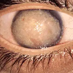 2. ^ a b c Klintworth GK (2009). "Corneal dystrophies". Orphanet J Rare Dis. 4 (1): 7. doi:10.1186/1750-1172-4-7. PMC 2695576. PMID 19236704.