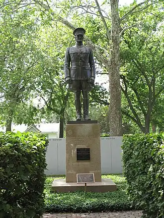 The home features period-specific furniture from the mid- and late-1800s as well as a small museum chronicling the life of Pershing. A few steps away, the restored Prairie Mound school also offers interpretive displays. Tours are available. The garden features a Wall of Honor with the names of war veterans as well as a life-size statue of Pershing (pictured at right) created in the 1950s by sculptor Carl Mose.[7]