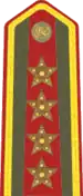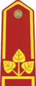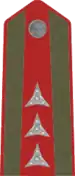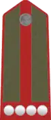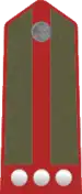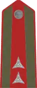 | Generál | Plukovník | Podplukovník | Major | Štábní kapitán | Kapitán | Nadporučík | Poručík | Podporučík |