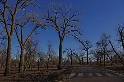 In May 2011, the park was inundated with floodwaters from the Missouri River, with water levels reaching their peak of 19.24 feet (6 m) on July 1, 2011. Once the flood had abated, Bismarck Parks and Recreation District commissioned a visual survey of the damage caused by saturated soil conditions and wind storms. Over 1,200 trees had been toppled or partially uprooted. The report concluded that replanting should increase the diversity of tree species to reduce the losses if an insect or disease were to enter the park, and also ensure introduction of species with known tolerance of flooding.[7] Campgrounds were closed for the season while the cleanup took place.[9] By November 2011, around three-quarters of damaged and fallen trees had been removed by forestry crews.[10]