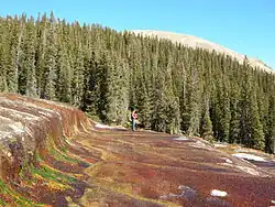 ![]() Terraces formed by mineral springs in upper Geneva Creek | |