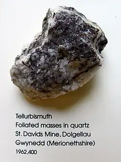 Tellurbismuth with quartz, from Dolgellau in Snowdonia National Park