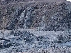 The structurally deepest parts (the basal complexes) of Fuerteventura, La Gomera, and La Palma include hydrothermally metamorphosed oceanic crust rocks and lower seamount rocks that were altered from their original igneous and sedimentary rock types and folded before the three islands emerged. These rocks were subjected to pressures and temperatures corresponding to zeolite, prehnite-pumpellyite and greenschist facies.[35] These metamorphic rocks have been uplifted and then exposed by erosion of younger overlying rocks.