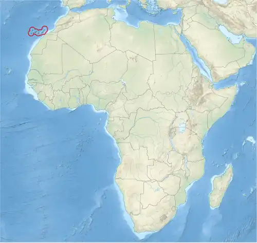 Canary Islands (top-left, ringed in red) in relation to Africa