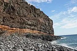 Minor deposits of sedimentary rocks outcrop on the Canary Islands. They consist of calcrete/caliche, sandstone, conglomerate, aeolianite, and limestone.[34]